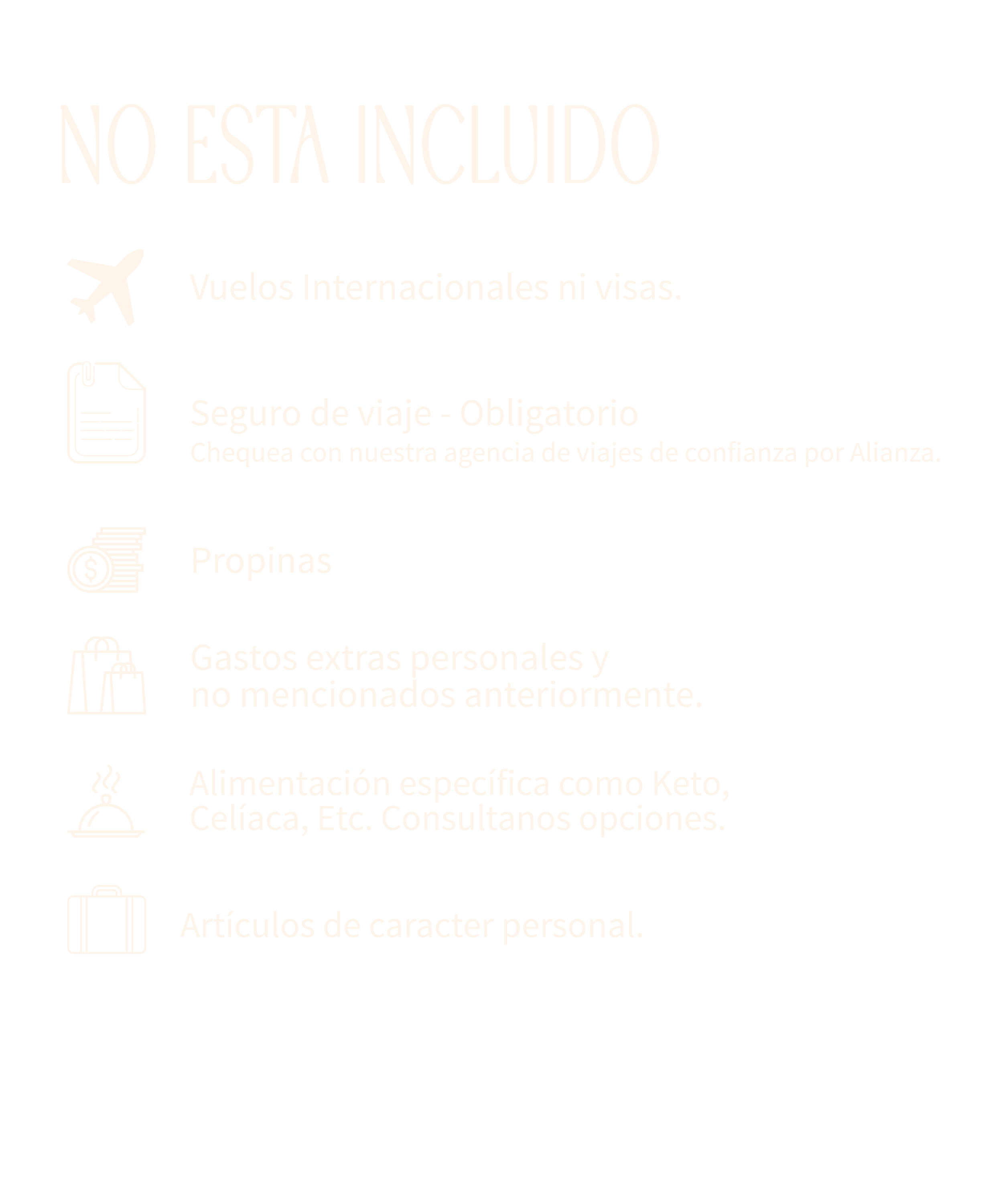 La asistencia al viajero es obligatoria. Podemos brindarte contacto de confianza con descuentos para La Tribu.