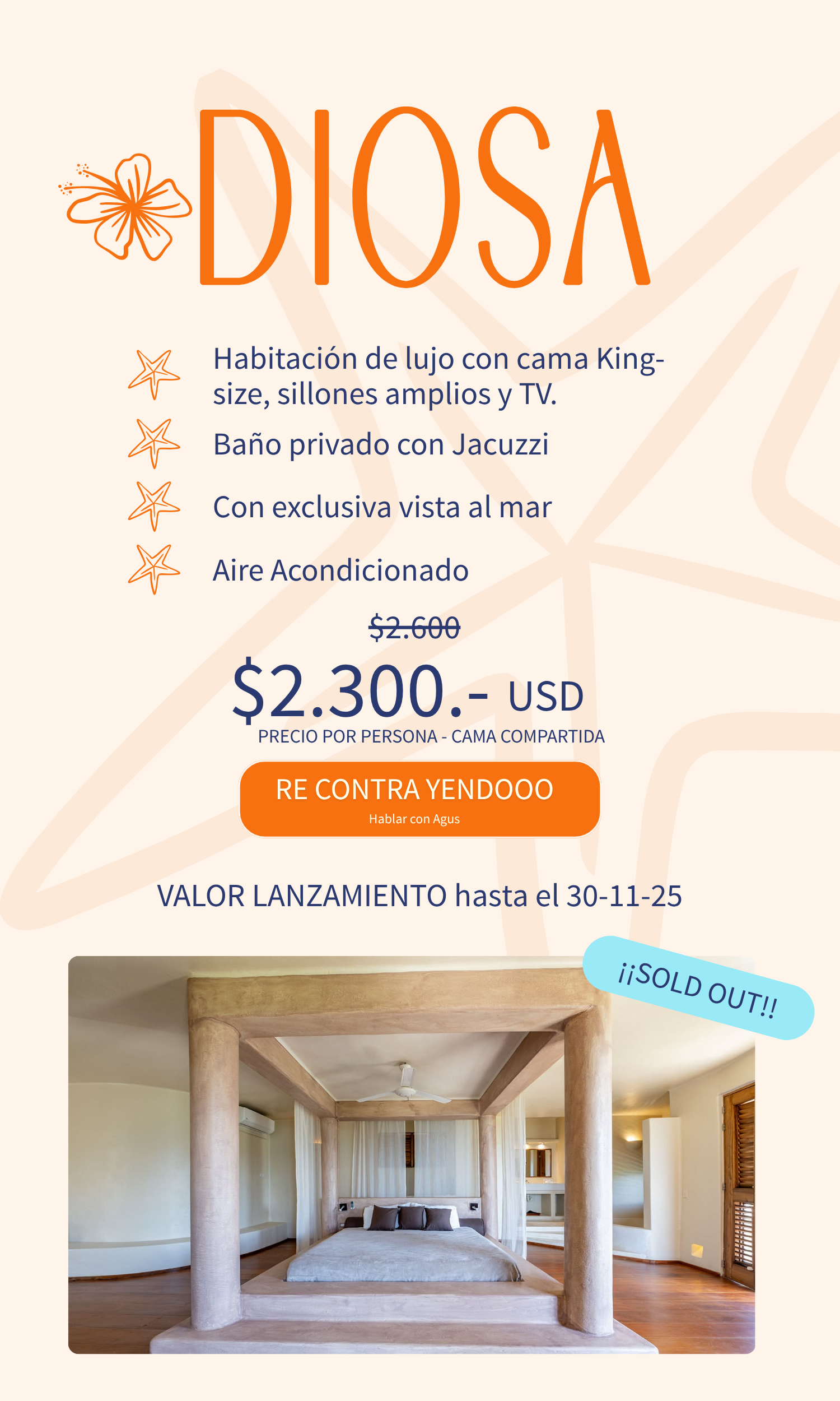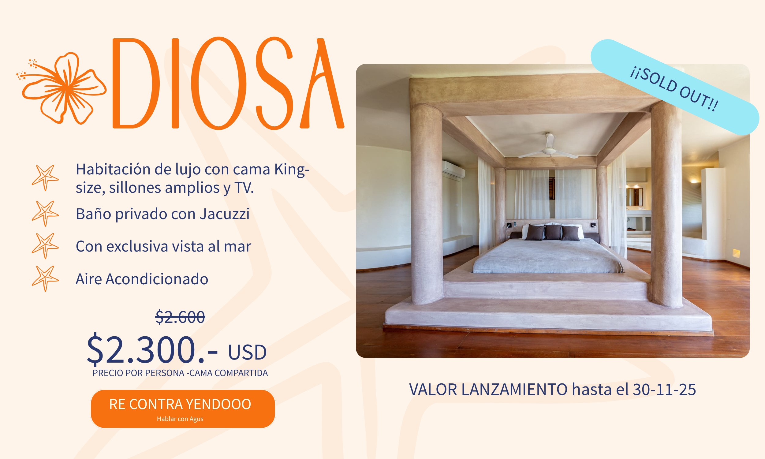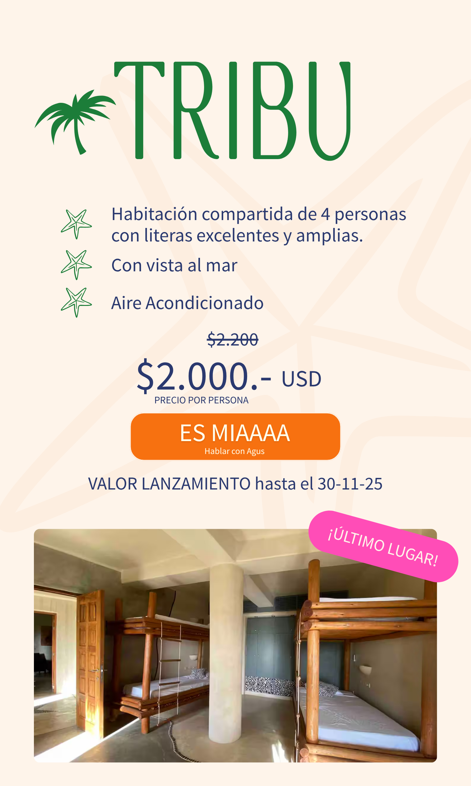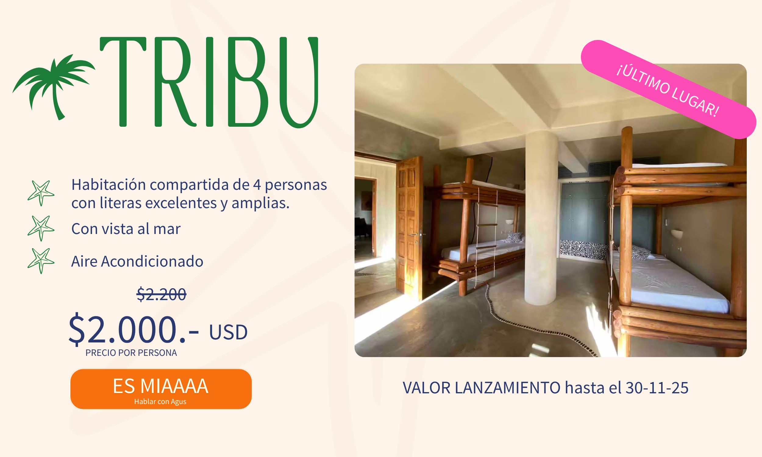 - La reserva se hace con 500 USD.